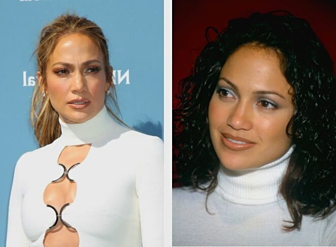 Лопес полюбилась нашим мужчинам за харизму и пышную фигуру, но такую популярность она получила не так давно. В молодости она была незаметна на фоне ее конкуренток. Она была привлекательна, но странный макияж, прически и наряды – скрывали ее красоту. Сейчас Джей Ло расцвела. Она поработала над образом, над фигурой. Теперь от нее невозможно оторвать взгляд на красной дорожке.