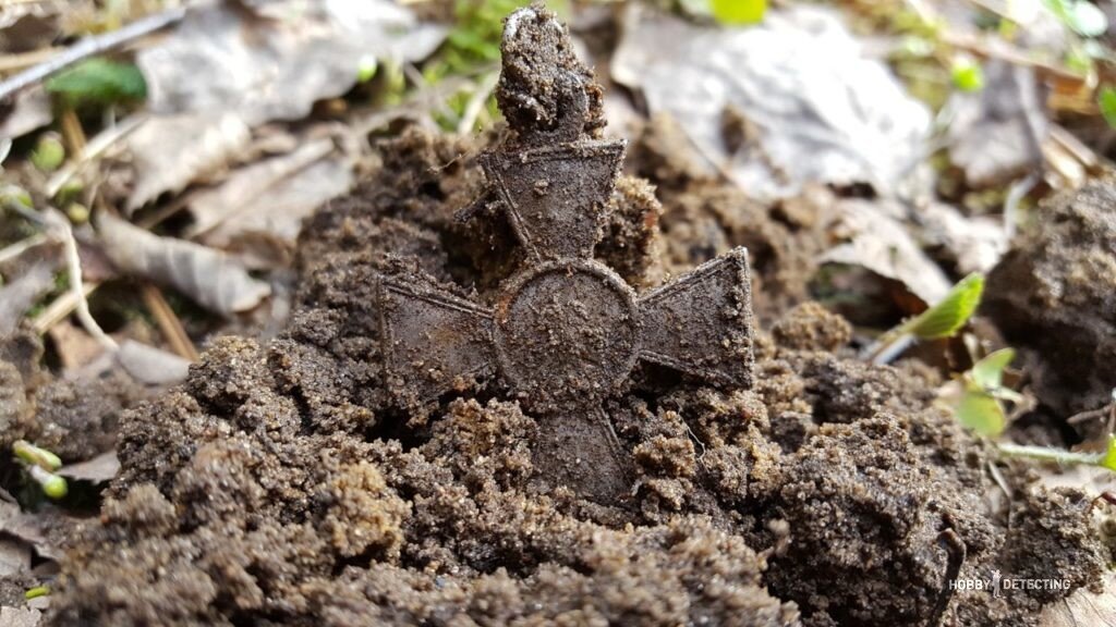 Смотрю, торчит ушко из земли как у крестика, вытаскиваю и пропал дар речи! Георгиевский крест 4 степени! Аж заорал матом! Прибежали товарищи и повторили все мои слова. Я не верил. В общем, поздравили меня, сделали фотосессию, заворачиваю находку, убираю ее, беру прибор в руки и проверяю ямку.