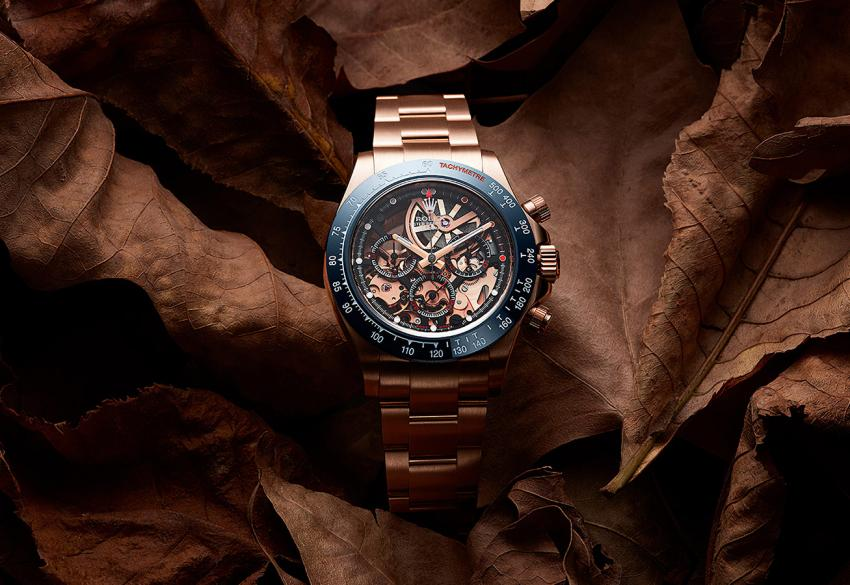 В 2017 году часы Rolex Daytona, которые носил Пол Ньюмен были проданы за рекордные $17 млн. Новая версия легендарной модели от часовщиков Les Artisans de Genève доступнее, но впечатляет не меньше. Заказчик попросил мастеров воплотить в часах прозрачность горного озера Блаузее в Швейцарии и дыхание осени.