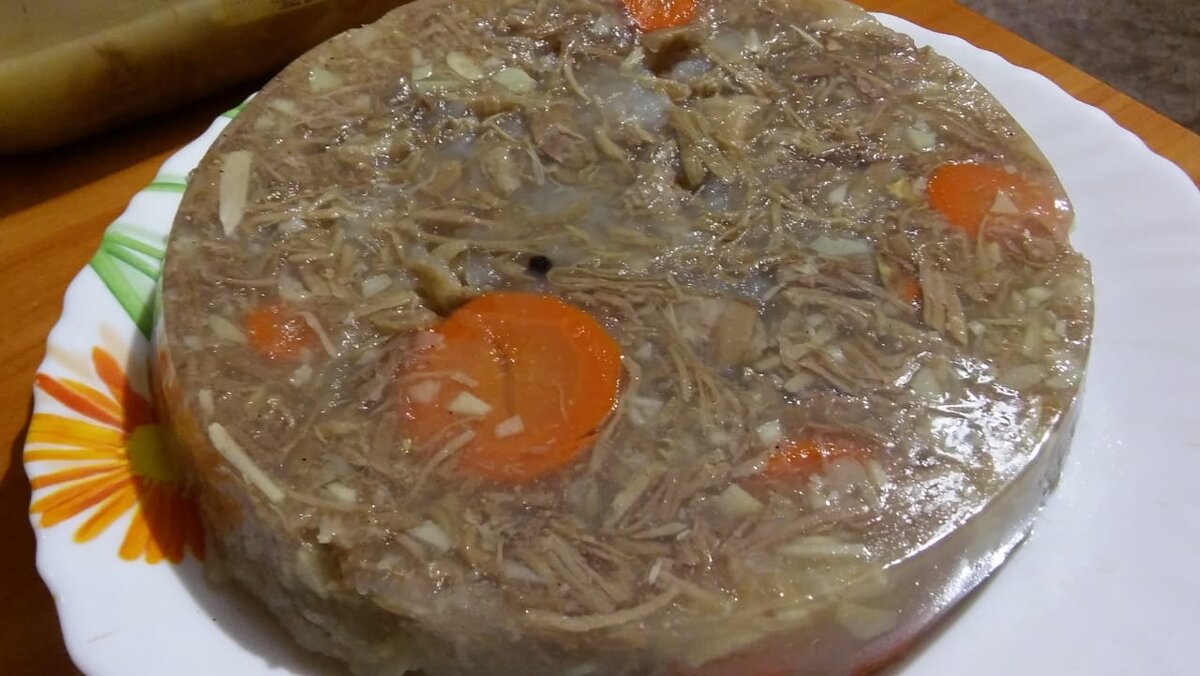 И начала ждать когда всё остынет. Я очень надеялась, что у меня получиться, но...... Он не застыл, увы. Мне пришлось опять всё слить в кастрюлю, найти в своих закромах желатин и добавив его в бульон подогреть и разлить всё по новой. Так что первый блин у меня всё таки получился комом , как говорится. Но радует что со второй попытки всё таки получился.