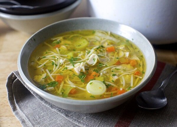 И в этом случае что может быть лучше, чем суп на мягком курином бульоне с овощами и нежной тоненькой лапшой? Пусть на приготовление этого блюда может уйти полдня, но оно вознаградит вас глубиной вкуса, избавит вас от угрозы простуды, заставит забыть о морозном ветре на улице и даже уменьшит муки зависти в социальных сетях к тем, кто, по-видимому, все еще находится в тропическом отпуске (все, кроме нас).
