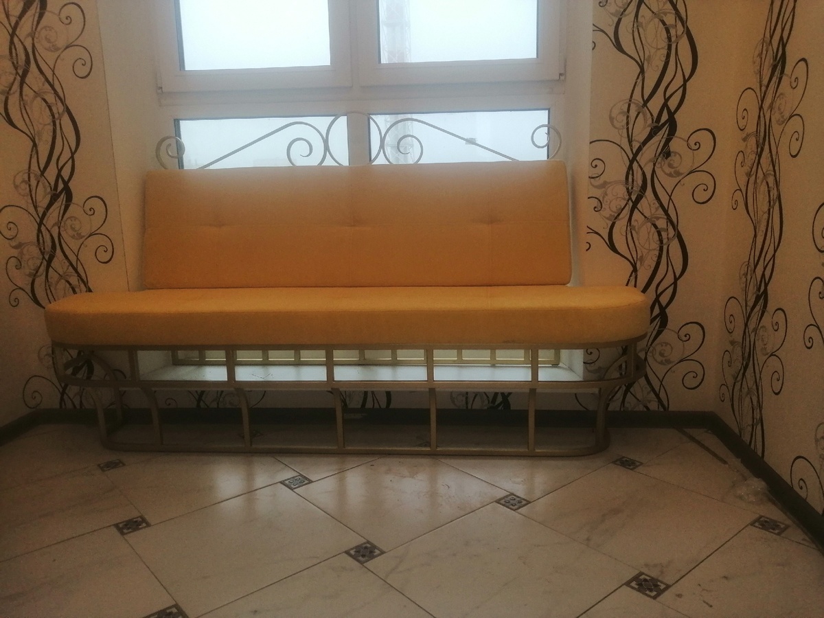 Банкетка в проем окна. Спинка и сиденье мягкие.