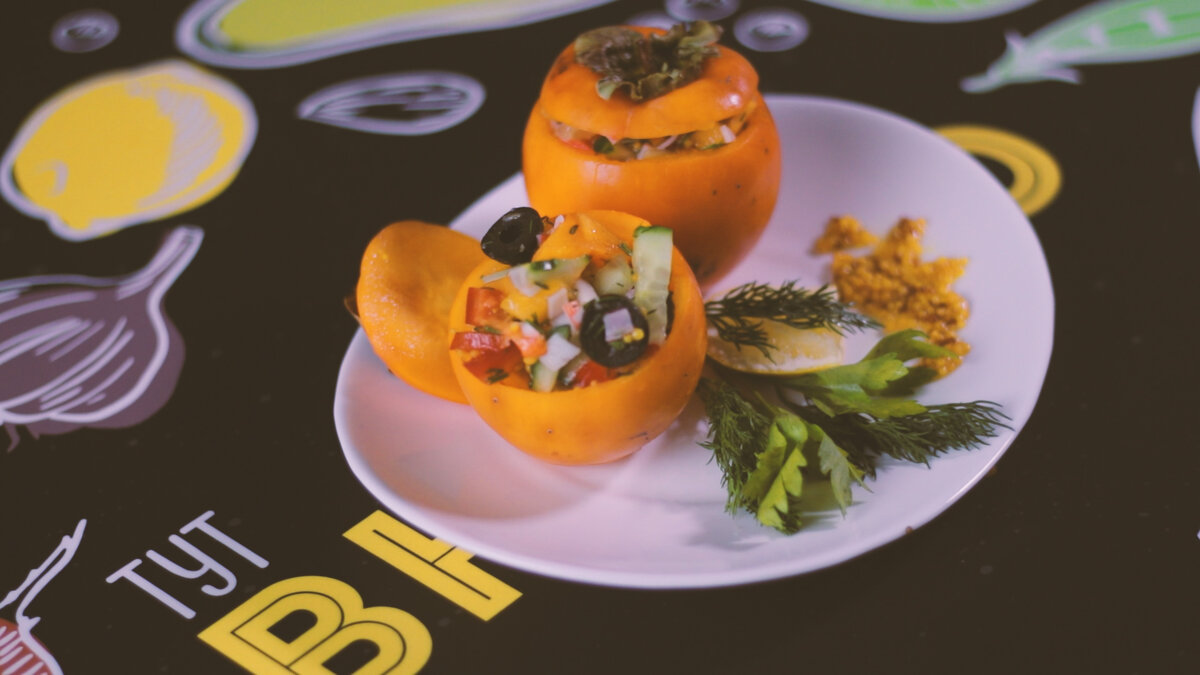 Салат с хурмой и крабовыми палочками это оригинальное и вкусное блюдо, обладающее необычным пикантным вкусом, благодаря сочетанию ингредиентов и заправки из меда и горчицы, которое обязательное придется по вкусу каждому.