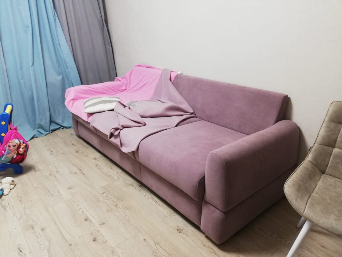 Цена такого дивана 80 000 руб. Не знаю, как называется ткань, но она очень приятная на ощупь. Предыдущий, тот который вернули, обошёлся в 58 000 руб.