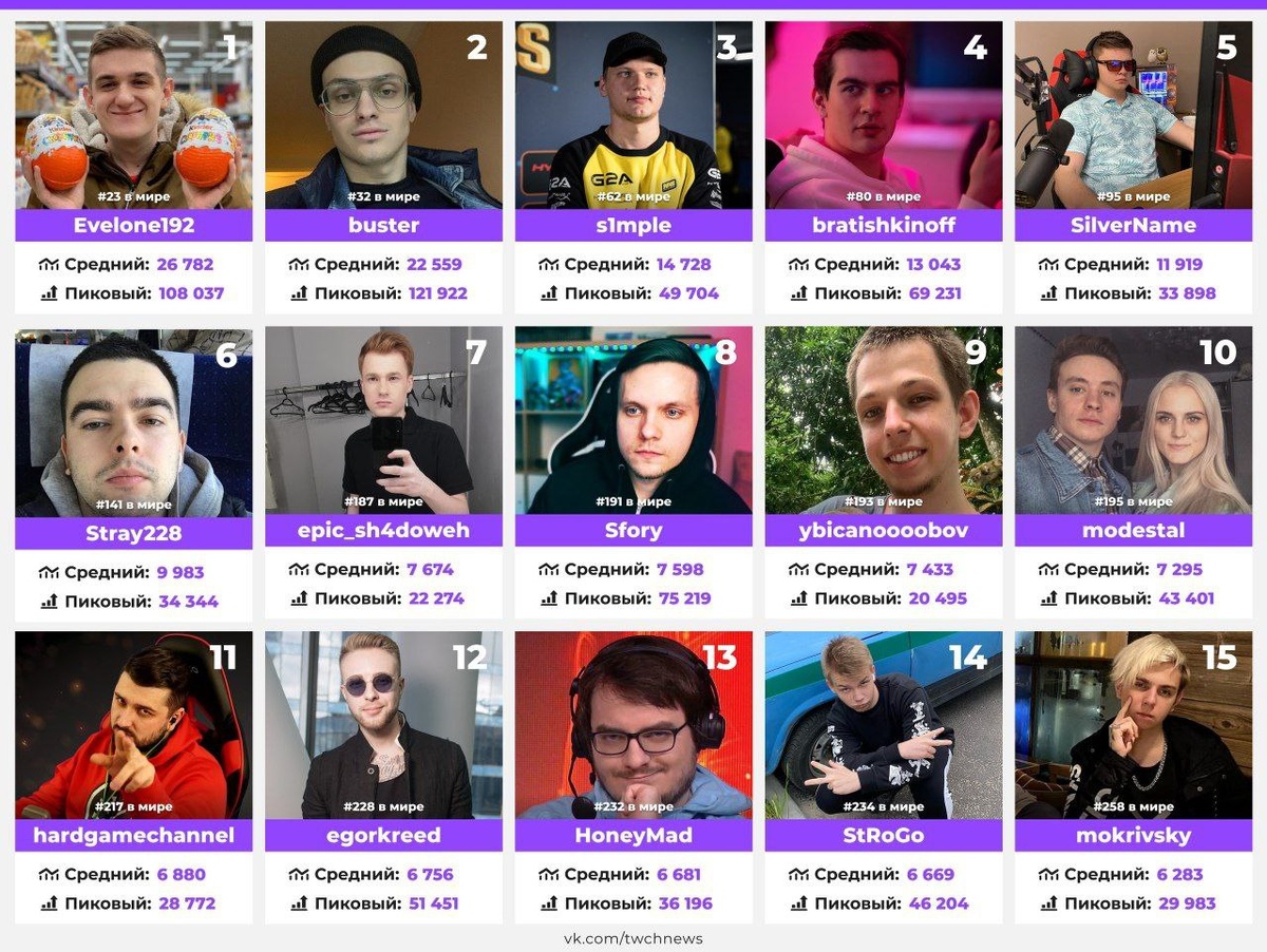 Топ-15 СНГ Twitch-стримеров по среднему онлайну за 2020 год 📈