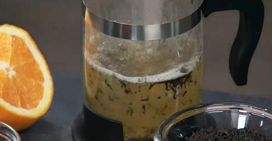 Переливаем во френч-пресс с чёрным чаем, даем завариться. Приятного аппетита!2