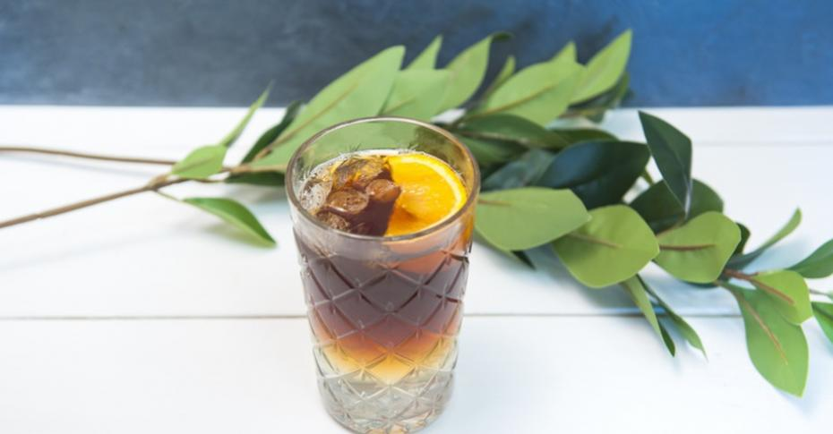 Завариваем кофе 3-4 минуты. Наполовину стаканы заполняем льдом, кладём по дольке апельсина, заливаем тоником и горячим кофе. Приятного аппетита!