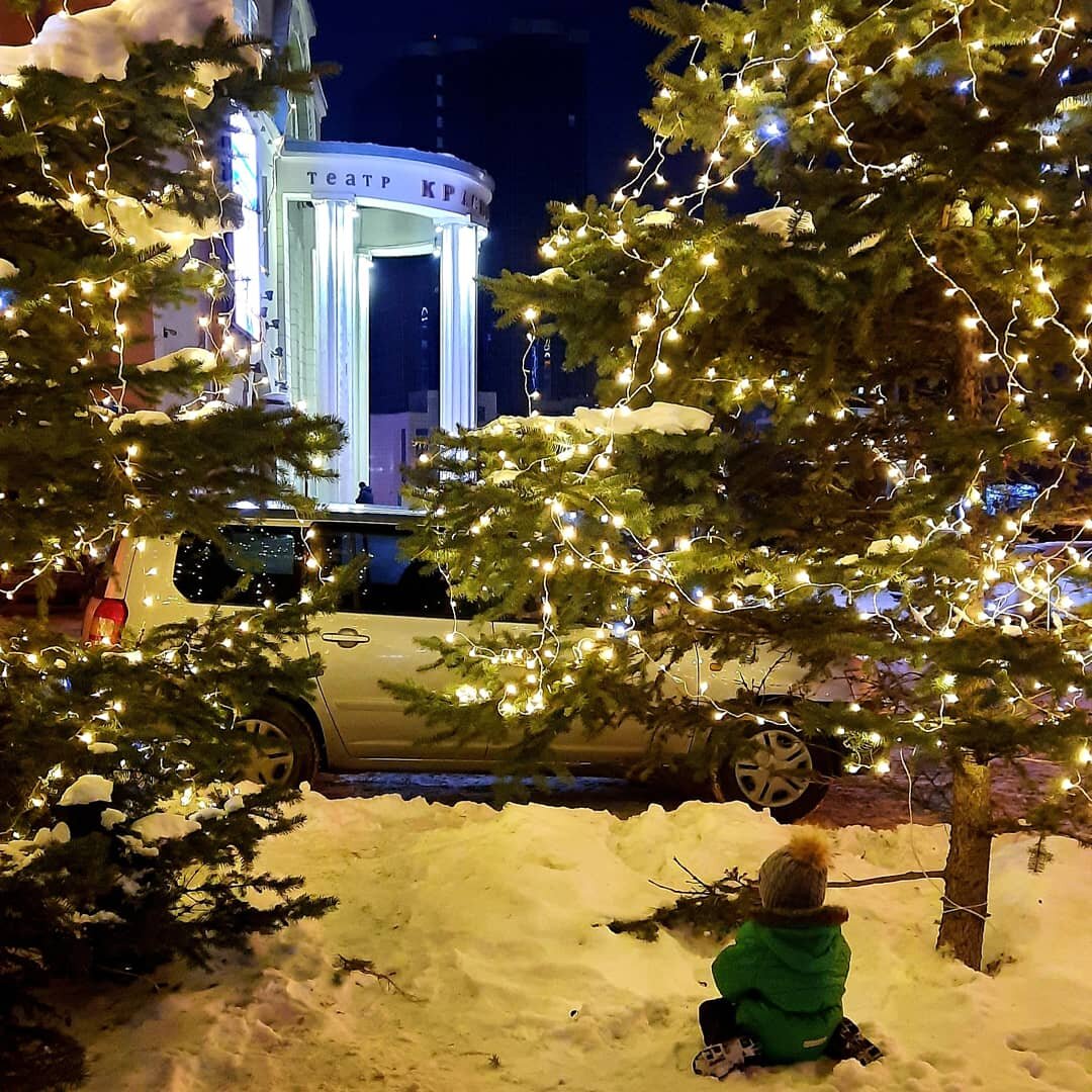 Театр "Красный факел" Новогоднее убранство горда волшебно! Возле "Красного факела" тоже уютная атмосфера! 💫 Здание театра с достаточно сложной стилистикой (ампир с элементами модерна и русского стиля) - объект культурного наследия регионального значения. Он был построен в 1914 году и в нём размещалось Купеческое собрание (Коммерческий клуб). Это был самый красивый и самый большой зал в городе с зимним садом, гостиными и игральными комнатами. Тут часто проводились как деловые так и частные встречи, банкеты и праздничные мероприятия. Именно тут появилась первая в городе профессиональная сценическая площадка. Поэтому неудивительно, что здесь стали проходить главные культурные события города. Например, весной 1916 года тут выступал поэт Константин Бальмонт. Во время Первой мировой войны некоторые помещения клуба оборудовали под госпиталь и военную кухню, проводили благотворительные вечера. В революционные годы здание захватили большевики и сделали из него центр пропагандистской деятель
