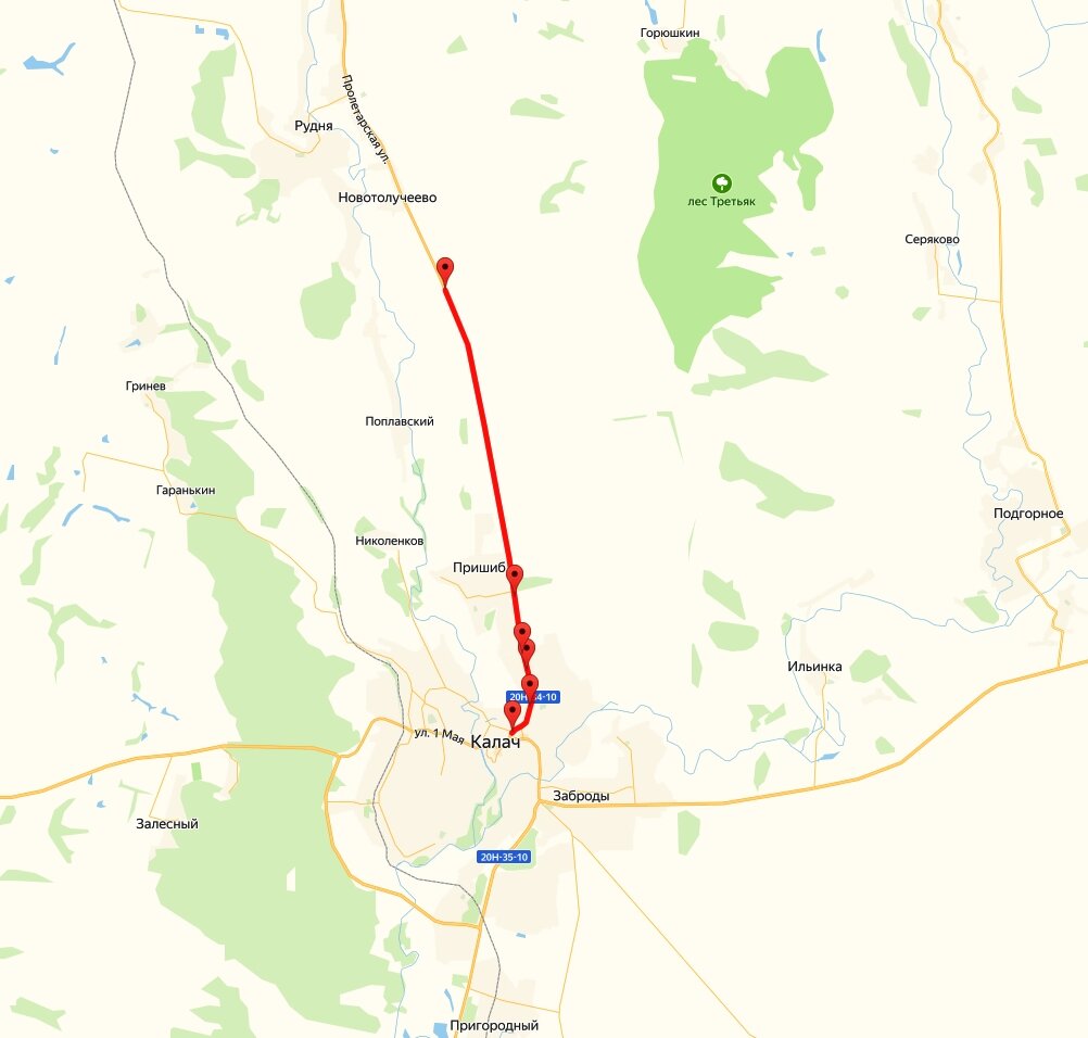 Участок маршрута: Калач – Пришиб – Поплавский.