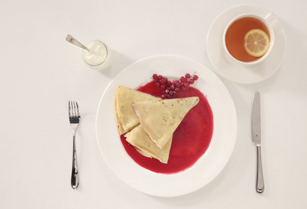 Тонкие блины на молоке — это английский вариант традиционных пышных русских блинов, выпеченных на дрожжах. В Европе блинчики имеют вид тонких, почти прозрачных салфеток. Во Франции их называют «крепы» и подают с сотней разнообразных начинок. Никаких особых уловок в приготовлении нет: чем более жидкое тесто, тем тоньше получается блинчики. Ажурный вариант, в дырочку, получится, если часть молока