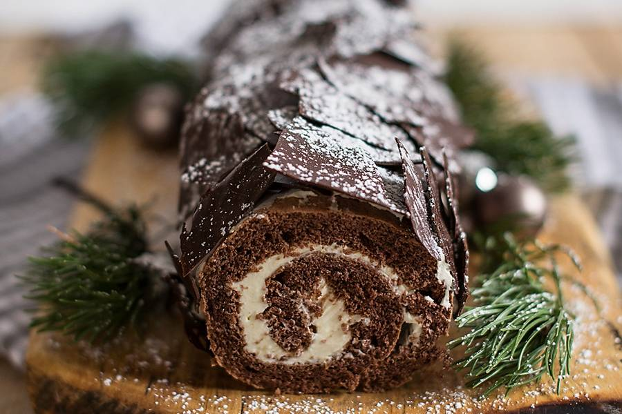 Традиционный рождественский торт, распространенный во Франции. Обычай приготовления блюда восходит к средневековому обычаю сожжения полена в ночь перед Рождеством.