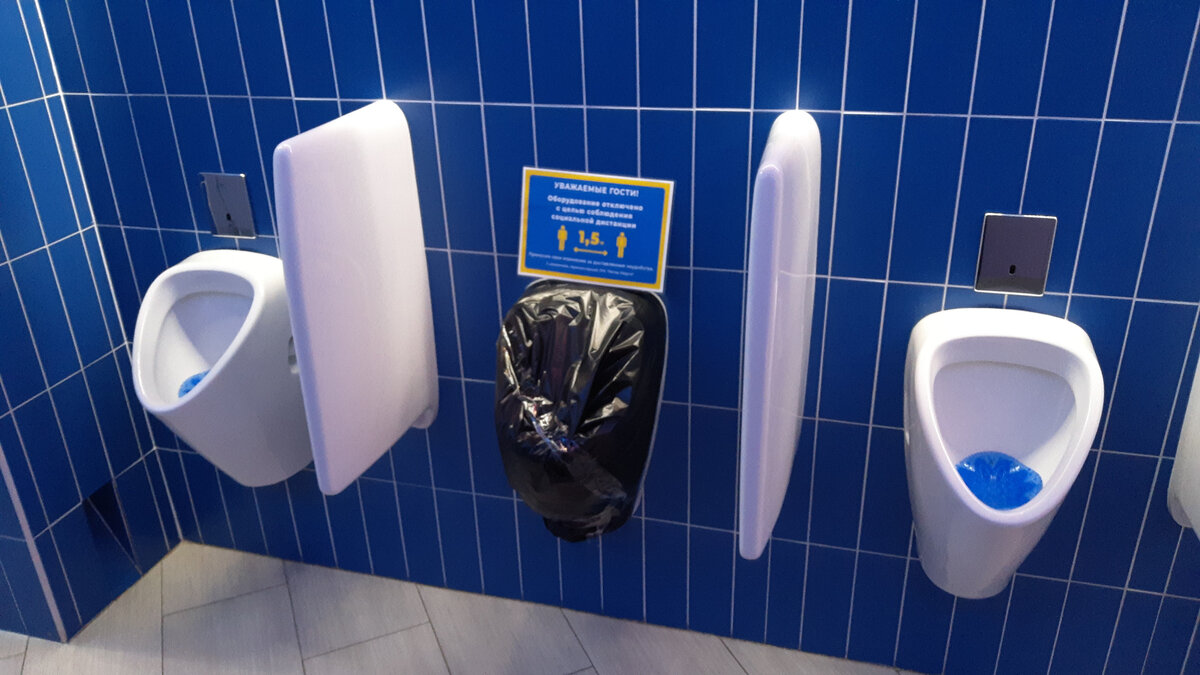 Начну со странного кадра, сделанного в мужском туалете одного ТРК. Соблюдайте дистанцию!