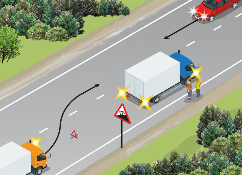 Автомобиль сломался и занимает одну из полос. Вроде бы, все очевидно — пропускаем встречного и едем. Или не совсем?