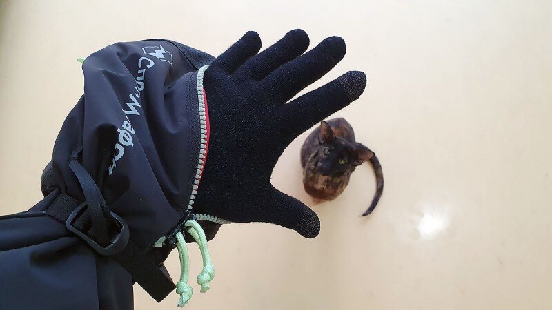Тонкие Дексшеллы напоминают строительные перчатки с противоскользящей ладошкой. В них можно делать все, что угодно. Крутить колесики на фотоаппарате, нажимать кнопочки, тыкать в телефон «сенсорными» пальцами. Они мягкие и не сковывают движения.