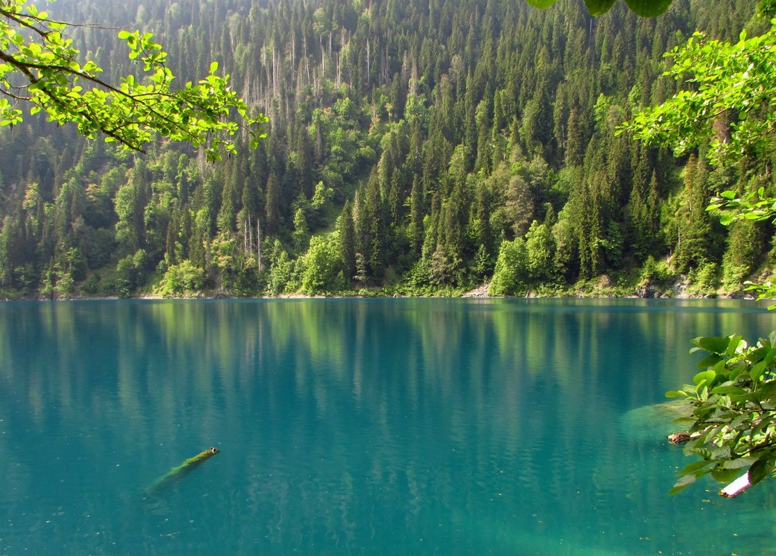 Озеро Рица расположено на высоте 950 метров над уровнем моря. Его берега обступают горы, поросшие лесом, высотой 2700-3000 метров. Как в зеркале, они отражаются в водной глади Рицы. Максимальная глубина озера — 116 метров, оно считается самым глубоким озером на Кавказе. У Рицы удивительно красивый цвет воды — синевато-зеленый.