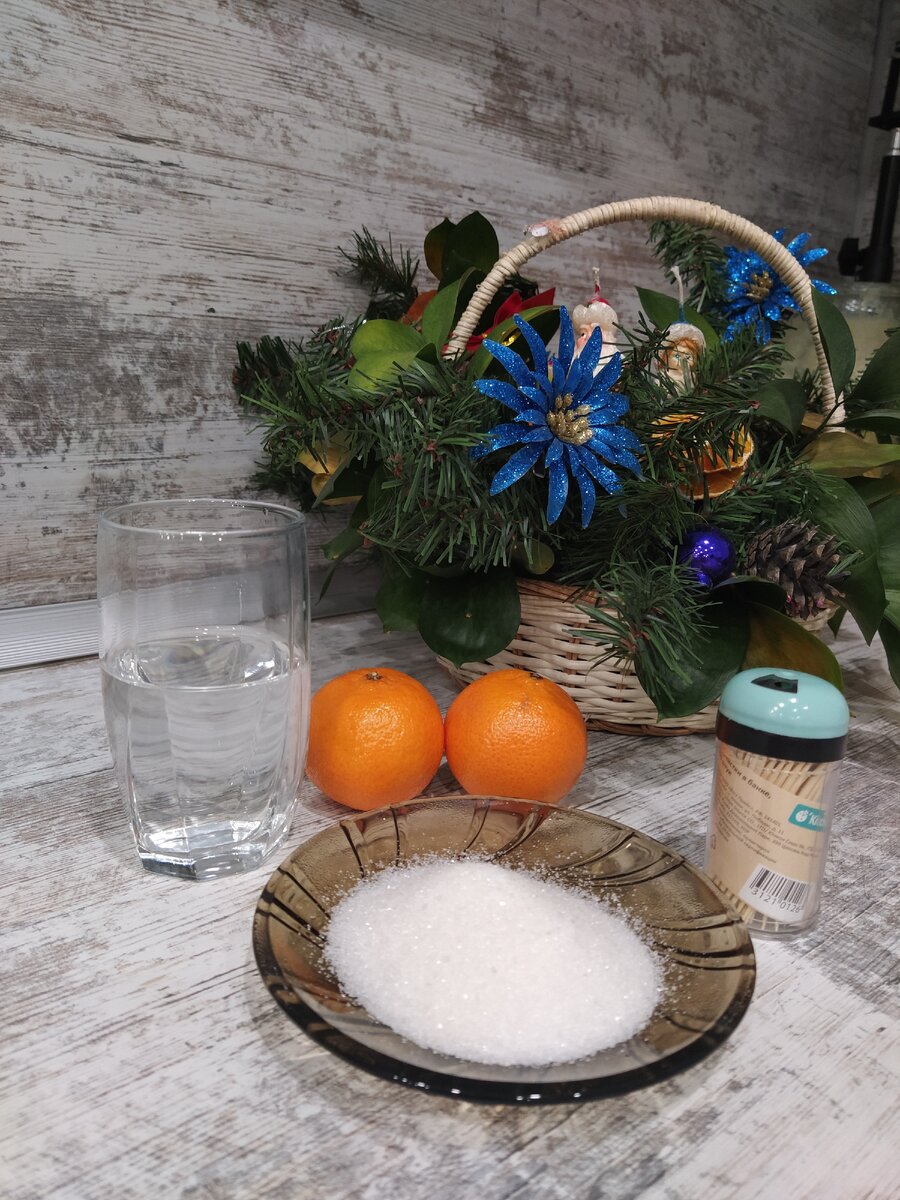 Нам понадобится: мандарины 2 шт, сахар 200 гр, воды 100 мл, зубачистки или палочки.