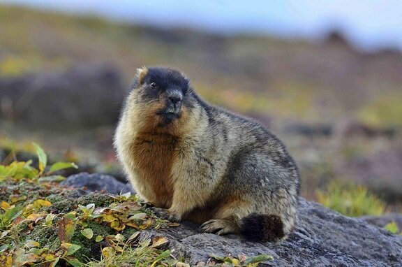 - Голова похожа на кроличью и сидит на короткой шее. Лоб узкий и высокий, скулы широкие. Бугор за глазами выражен намного меньше по сравнению с другими видами. Уши маленькие по размеру и круглой формы. Сурок обладает прекрасным слухом, обонянием и зрением. Защёчные мешки отсутствуют.