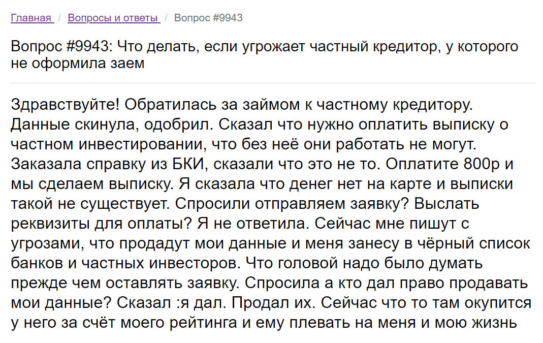 👉 Суть вопроса сводится к тому, что человек обратился к частному кредитору, а теперь частный кредитор угрожает возможному заемщику.