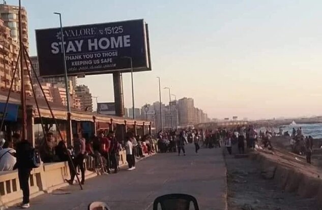 Вот очень красноречивые фото толп людей на улице на фоне плакатов StayHome (оставайтесь дома). Это фото еще с Рамадана, но с тех пор в Египте ничего не изменилось.