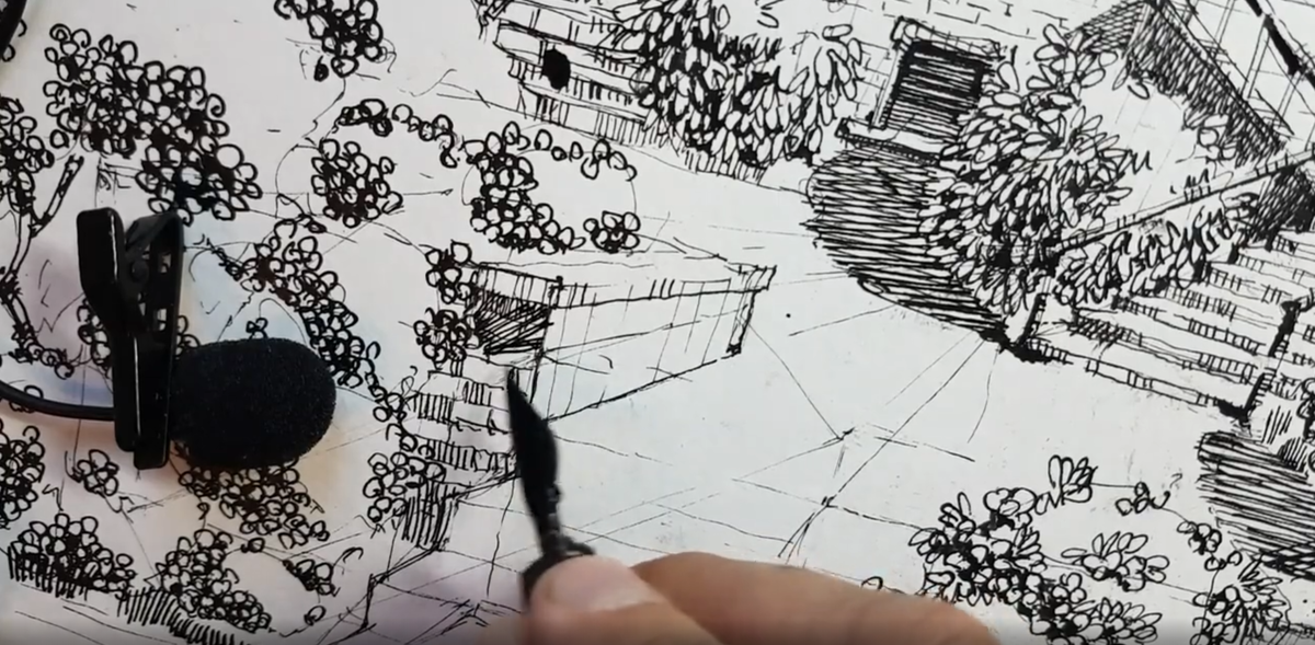 Сегодня немножко расскажу про рисование деталей. Этот рисунок -большой рисунок итальянского сада с итальянским домом нарисованный в одноточечной перспективе, и на этом видео, которое в конце статьи - я прорабатываю различные детали этого рисунка для того чтобы все смотрелось естественно и эффектно