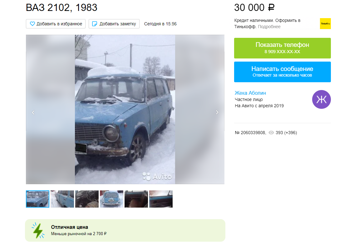 Самое мое "любимое" объявление, мало того что на автомобиль это вообще мало похоже, к тому же в объявлении написано что это Ваз 2106 а по передней част машины прекрасно видно что это Ваз 2101. Автор объявления даже не разбирается в машине которая у него имеется. И цена, просто космос. 35000 рублей по моему просто космическая, адекватно этот пепелац должен стоить 15000 рублей.