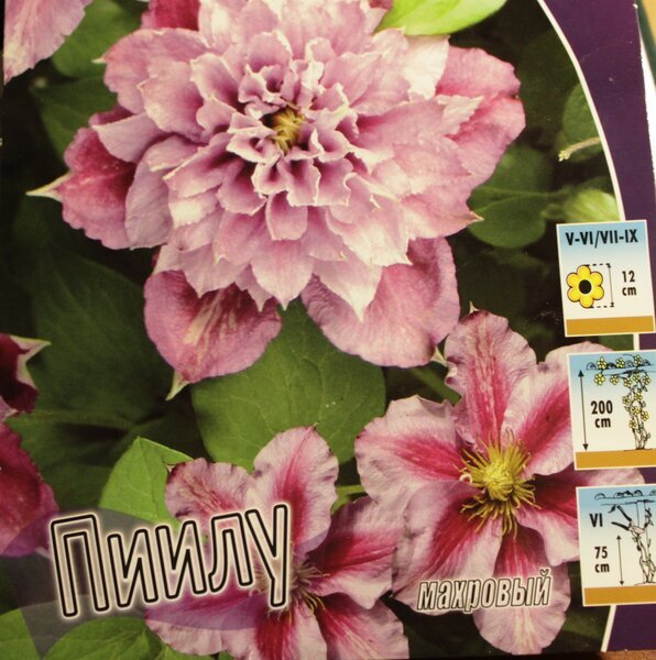 Комментарии: Наталья Марченко :На фото рядом с упаковкой "Пиилу" клематис "Нелли Мозер", у меня такой тоже есть. Так что тут явно не то положили, уж не знаю, умышленно, или случайно. И "Мульти Блю" у меня такой же точно, как у Вас, не махровый. Ну вот любят они приукрасить, я тоже затрудняюсь назвать добросовестную фирму с посадочным материалом...