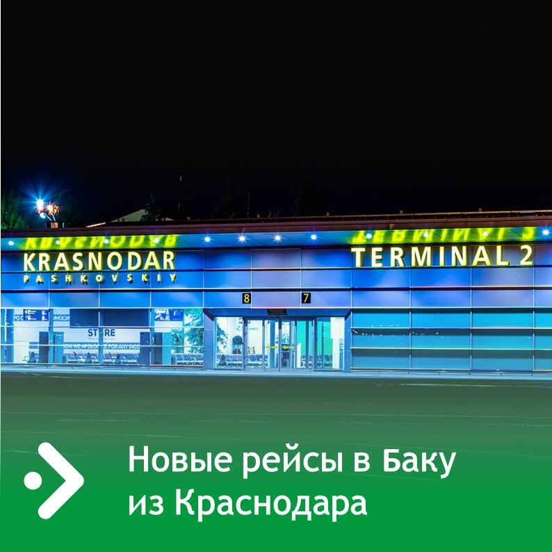 С 15 июня по вторникам вылеты в Баку выполняет авиакомпания S7 Airlines. Вылет из Краснодара в 12:30, прилет в обратном направлении по средам - 23:05. Полёты будут осуществляться на комфортабельном воздушном судне Airbus A320. Пассажирами первого рейса стали 166 человек.