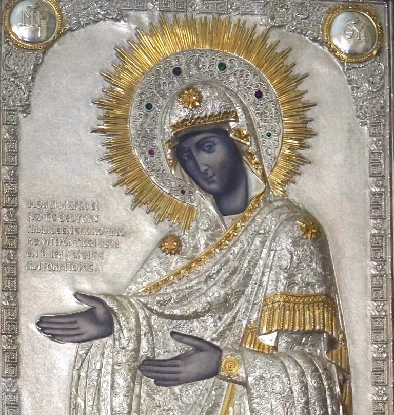 В русской традиции эта икона носит название «Старица». Святыня хранится в монастыре Патнократор. Одна из наиболеее почитаемых на Афоне.
