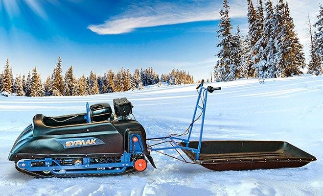 Мотобуксировщик дешевле, он компактный. Тебе не придется бояться, что его украдут. На него не надо прав, не надо регистрации, страховки, его можно хранить в сарайке, потому что это не такая востребованная техника для кражи, как снегоход. И места для него