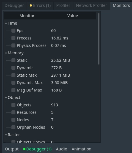 В дебагере годо есть монитор, в котором можно увидеть массу статистики по текущему проекту.