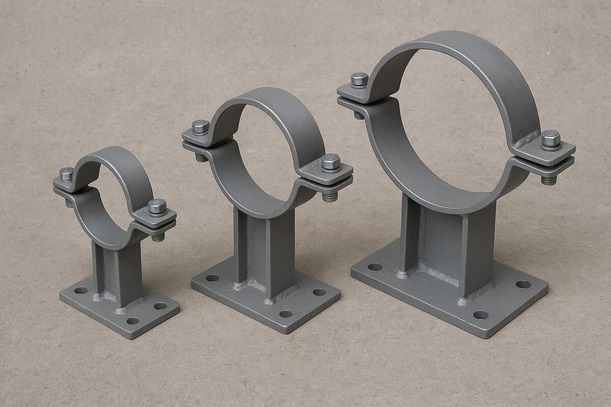 Хомутовые опоры – это специальные зажимы или крепления, для труб, которые представляют собой опорный механизм для подвешенных труб, будь то горизонтальные надземные или вертикальные, прилегающие к поверхности. Они жизненно важны для обеспечения надежного закрепления всех труб, а также для обеспечения любого возможного смещения или расширения трубы. Хомуты для труб бывают разных видов, так как требования к креплению труб могут варьироваться от простого крепления на месте до более сложных сценариев, связанных с перемещением труб или большими нагрузками. Очень важно использовать правильный хомут для труб, чтобы обеспечить целостность установки. Неисправность крепления трубы может нанести значительный и дорогостоящий ущерб зданию и конструкции в целом. Считается, что самый первый хомут был выкован в 1768 году кузнецом Иоганном Ирионом в городе Риквир, с целью ремонта городского фонтана, построенного в 1509 году. Однако достоверных данных касательно изобретения первого хомута нет. Основные