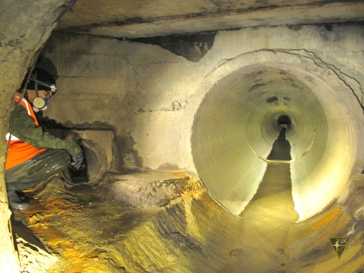 Ещё выше — устроена широкая двухъярусная камера. На втором ярусе в коллектор входят местные дренажные сети.