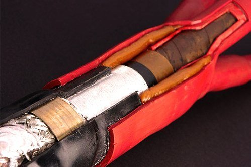 Это самые современные электротехнические изделия из данной сферы, которые отличаются простотой монтажа и высоким качеством соединения. После того, как муфта будет установлена на свое место, ее нагревают с помощью специального фена или посредством газовой горелки. Из-за воздействия высокой температуры материал муфты расширяется, а после остывания он сжимается, обволакивая кабель и создавая герметичное соединение. Кроме этого материал муфты обладает высокими диэлектрическими свойствами, поэтому риск пробоя практически исключается.