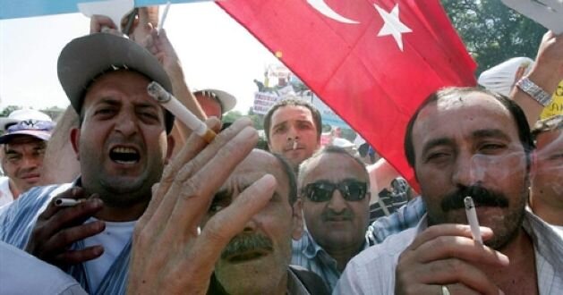 Действительно, в Турции, что мужчины, что женщины, дымят как паровозы. Наверное, она самая курящая страна в мире. Принятый там десять лет назад закон о запрете курения в общественных местах и штрафы не могут избавить население от этой вредной привычки.