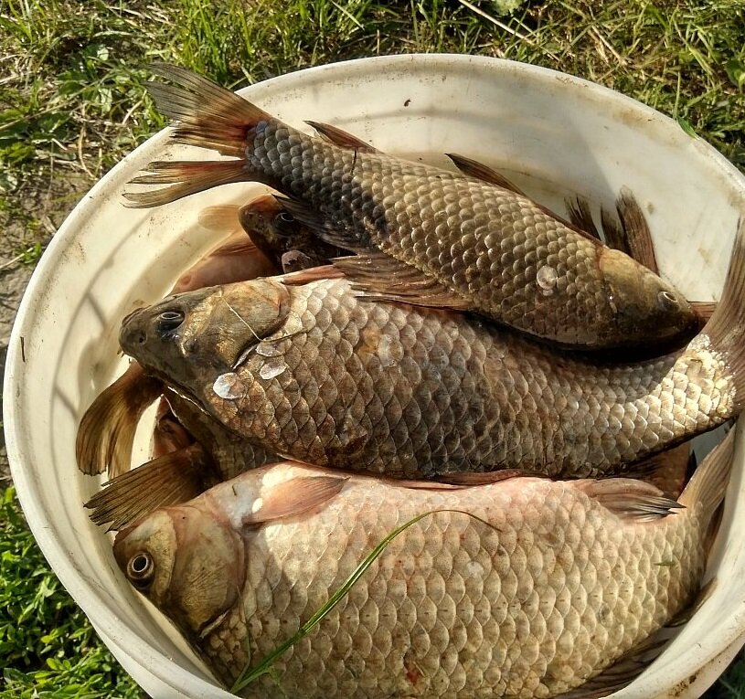 Прошло где-то полчаса слышу кричит, чтобы бежал помогать. Прибегаю, а она рыбу тянет, аж удочка согнулась. Конечно же я сразу помогать начал, вытягиваю, а там карась на килограмм. Я таких огромных карасей и видать не видывал, раньше как-то больше ладошки и не попадались ни разу. Повезло, так повезло!