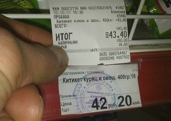 — Несоответствие цены товара, указанной на ценнике, цене товара, указанной на чеке после его оплаты на кассе, расценивается как нарушение прав потребителей и правил торговли.