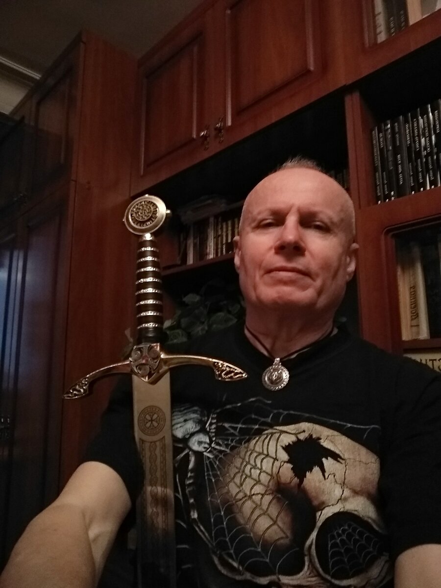 На фотографии к этой статье у меня на шее висит амулет Чёрного Солнца. С обратной стороны Солнце и сакральная надпись. Сверху, на заднем плане от меня вы увидите сакральный диск Солнца, совмещающий Ярилу и Черное Солнце. Внешний диск, жёлтый, охотники бегут за оленями - Ярила, движущийся по часовой стрелке. Внутри спиралевидное Солнце -