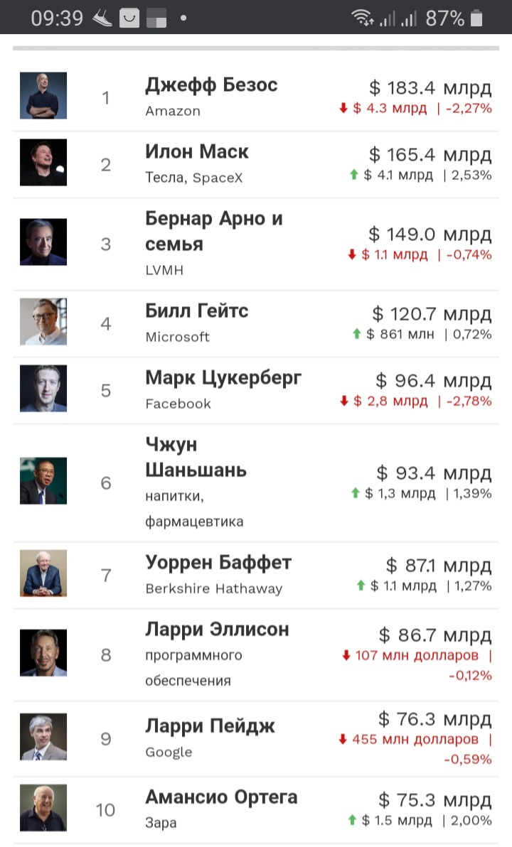 Илон Маск может обогнать основателя Амазон Джефа Безоса и стать миллиардером номер 1 в мири , с начала года он уже обошел основателя LVMN Бернара Арно . На картинке ниже 10 саммых богатых людей в мире .