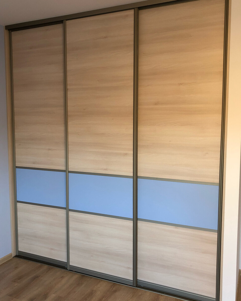💎 Двери купе. Профиль с разделителями в цвете «шампань». Наполнение дверей лдсп двух цветов.