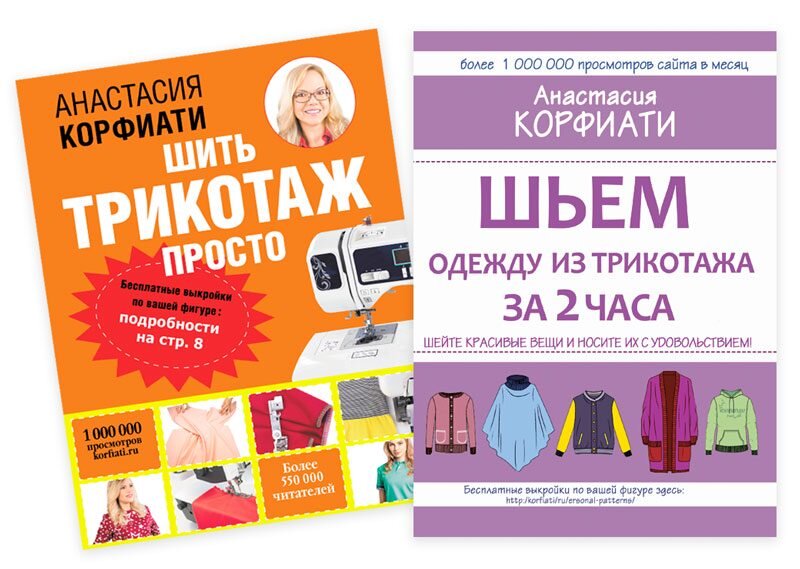 Дорогие читатели! Спешим поделиться с вами грандиозной новостью! В издательстве АСТ вышла новая книга Анастасии Корфиати — книга, которую все любители шитья ждали с большим нетерпением — полное руководство по раскрою и пошиву трикотажной одежды. Издание опубликовано в двух обложках — в твердой под названием «Шьем одежду из трикотажа за 2 часа» и в мягкой обложке — под названием «Шить трикотаж