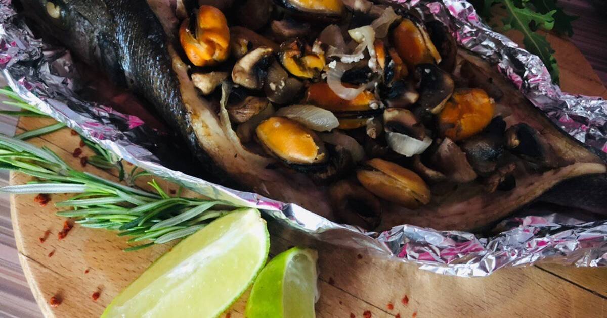 Недавно на просторах интернета я наткнулась на очень интересный рецепт сибаса, фаршированного мидиями и грибами и так как я просто обожаю рыбку я не смогла устоять и не приготовить столь привлекательное блюдо. Итог мне более чем понравился и я с удовольствием делюсь рецептом с вами.
