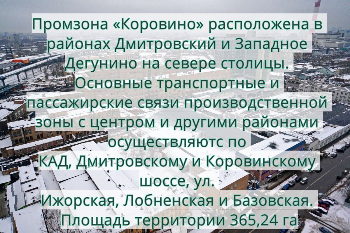 ПРОМЗОНА «КОРОВИНО» ( САО, Дмитровский, Западное Дегунино ). Небольшая справка об объекте: