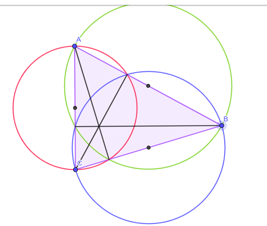 Ну и следствие: Высота треугольника всегда может быть радикальной осью двух окружностей, построенных как окружности с центрами в серединах двух сторон треугольника: