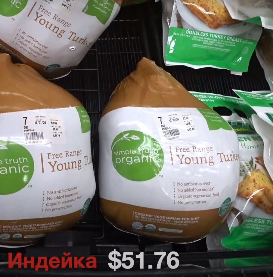 В России на рождественский стол обычно ставят мясные блюда из свинины, говядины - в зависимости от вкусов и возможностей. В США основное блюдо стола - птица, а точнее - индейка. Выбор ее в магазинах перед Рождеством просто огромен. Средняя тушка стоит 50$ - 3700 рублей.