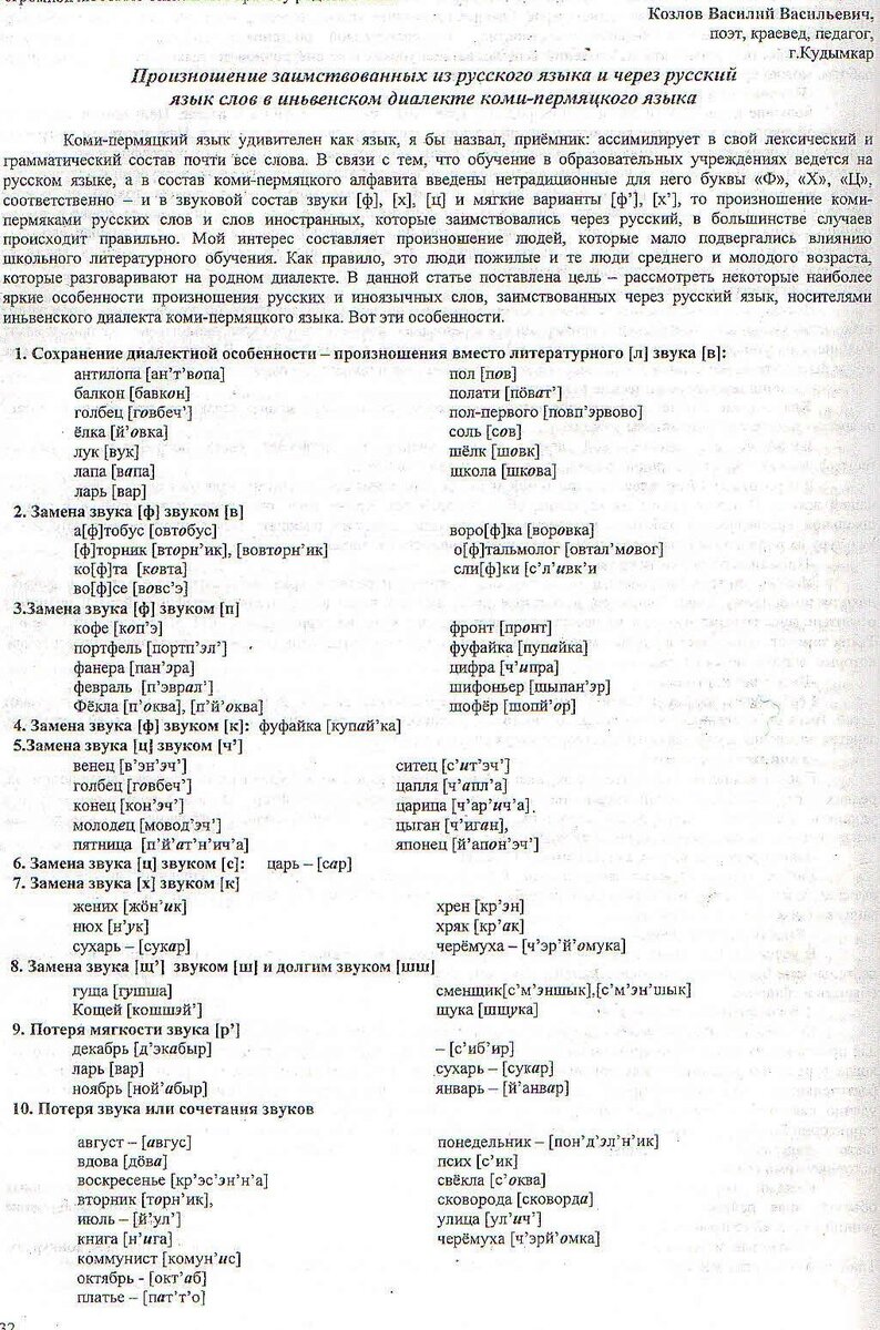 Произношение заимствованных из русского языка и через русский язык слов в иньвенском диалекте коми-пермяцкого языка
