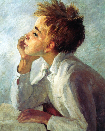 В комнате плумрак, рядом любимая бабушка, можно поговорить о чём хочешь. А тем для разговора у шести летнего мальчишки очень много. Бабушка рассказывает как Бог сотворил мир. В первый день создал Бог свет и стало на земле светло. Во второй день Бог создал твердь и назвал её небом. В третий день были собраны все ручейки и озера в одном месте, а суша в другом. И заполнила сушу растительность. В