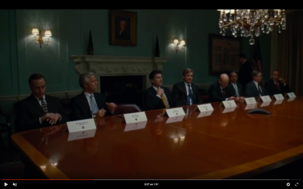 Фильм рассказывает про вывод из кризиса 2008 г. экономики США Генри Полсоном и его командой.