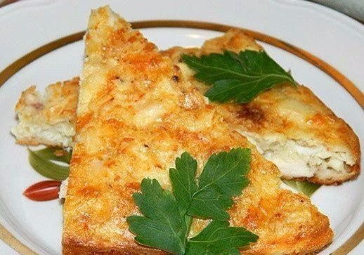 Сыр взяла обычный твёрдый — «Российский молодой». Для достижения диетического варианта лучше взять тоже твёрдого сорта, но низкой жирности. Пустила его на крупную тёрку.Добавила всё это к заготовке теста и тщательно размешала ложкой. Вылила в смазанную подсолнечным маслом форму, разровняла.Для готовности этой чудесной запеканки хватило 35 минут при температуре около 200'C (ставила форму в уже разогретую духовку). Вынула из формы, не дожидаясь остывания, и подавала тёплой. Хотя холодный вариант ничем не уступает — проверено лично! Запеканка получается лёгкой, но при этом сытной. Мне очень понравилась её структура. Надеюсь, что этот рецепт займёт почётное место не только в моей, но и в ваших кулинарных тетрадях! Приятного аппетита!