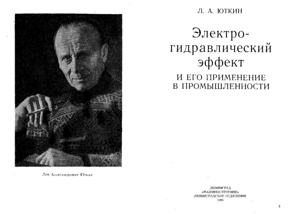 Все эти области применения были запатентованы Л.А.Юткиным и Л.И.Гольцовой и нашли свое отражение в итоговой книге Л.А.Юткина “Электрогидравлический эффект и его применение в промышленности”, подготовленной к изданию в 1986 году Л.И.Гольцовой.