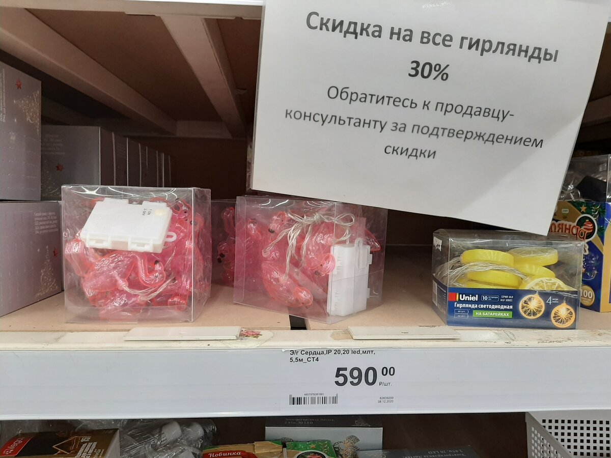 Как видите, скидка действует на все новогодние гирлянды. Можно неплохо сэкономить и купить на следующий год. Например, вот такие в виде розового фламинго за 590 рублей.